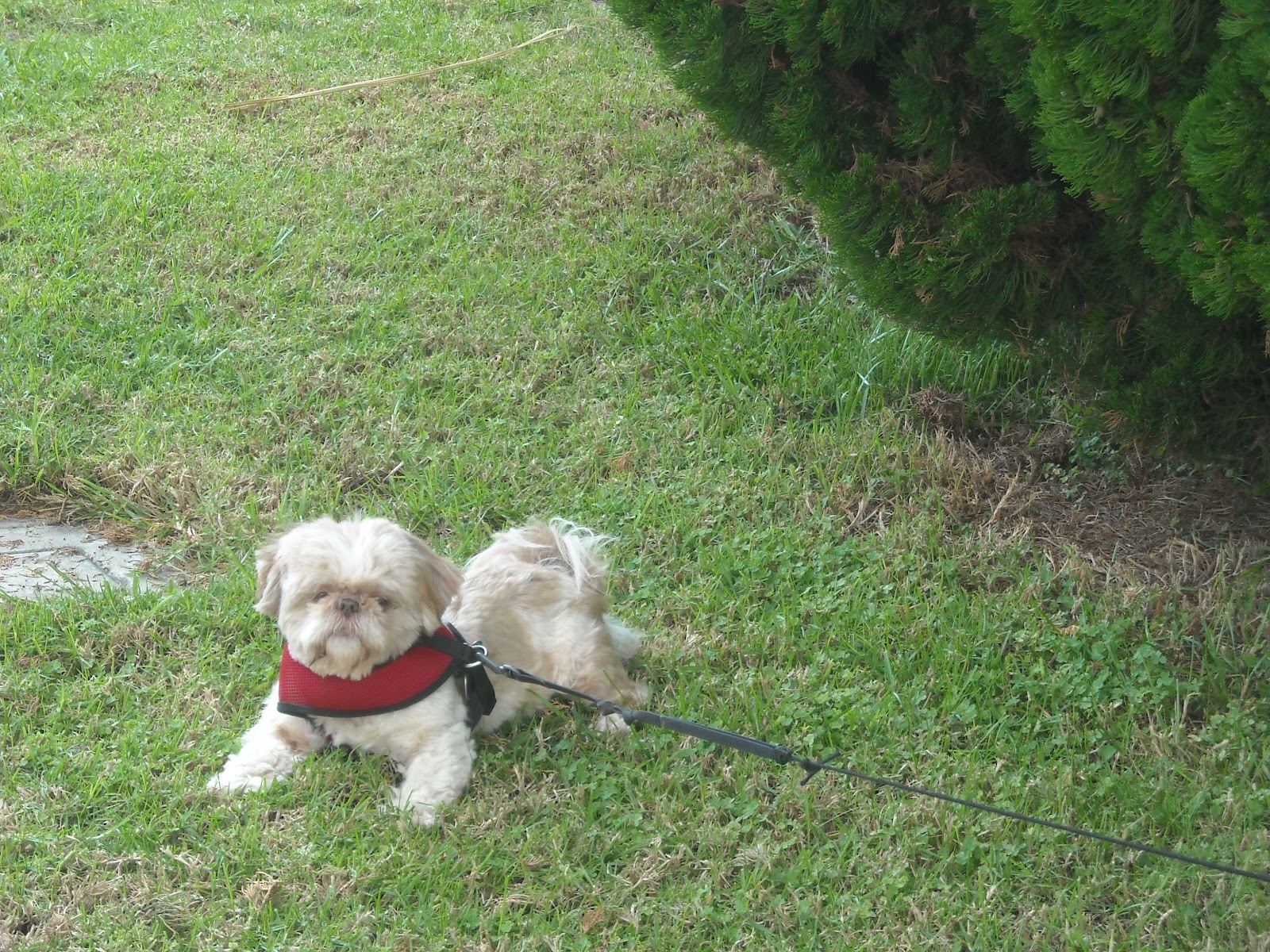 Oooooh! it's so nice and cool here with all the trees, Lots of things to see and do. I wish daddy would un-tie me from this leash and I can run all around free style like.